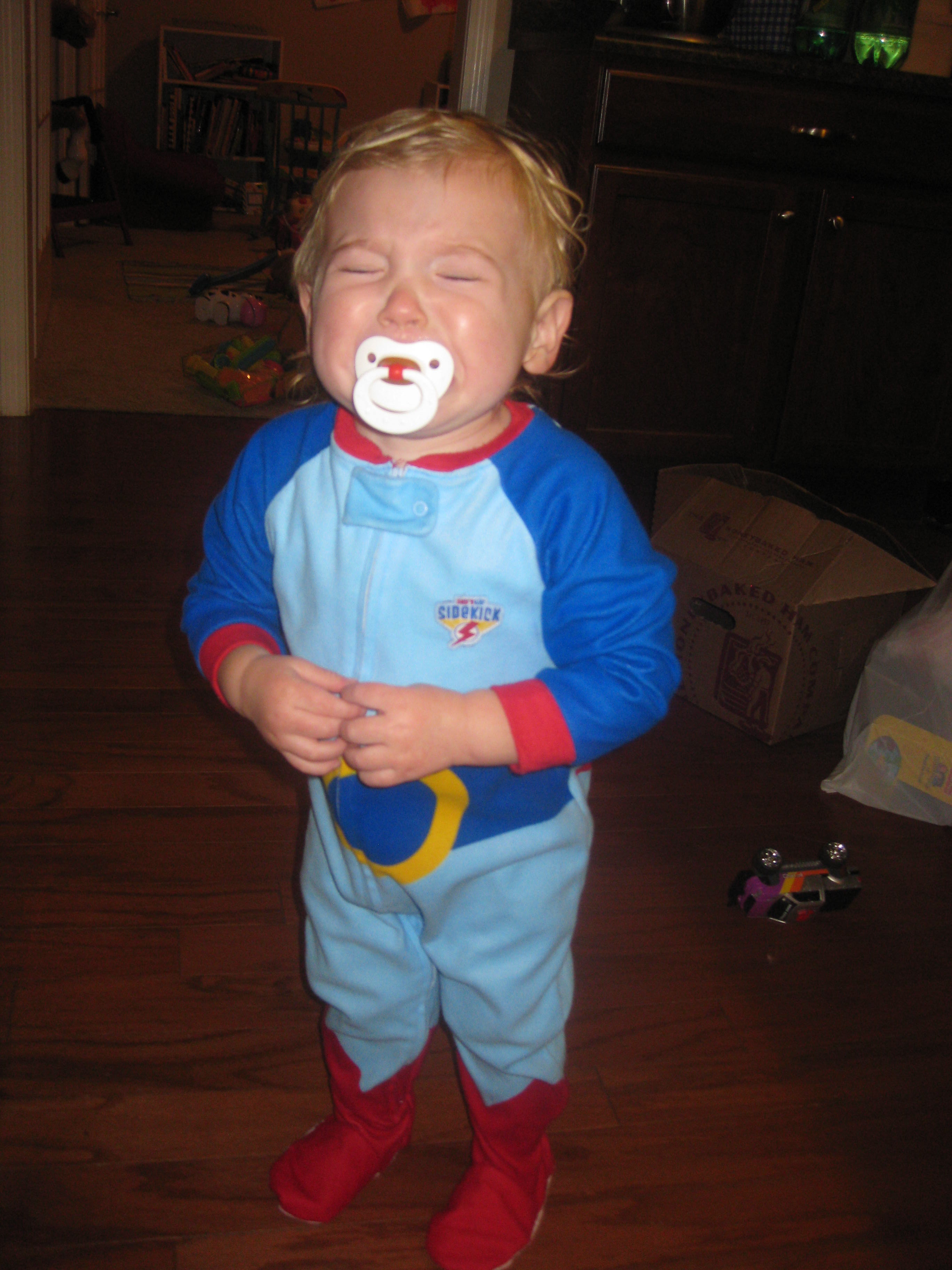 Suffice it to say, we all survived. Everyone is sleeping. No one is vomitting. Yet. Solomon was my little superhero. He was the only one who just sat and took in the action. He deserved to wear the superhero jammies and though he was melting down because he wanted a popsicle, he was Mr. Chill through the whole scene. Which makes me wonder what on earth he must be thinking in his 17 month old brain. “Dude, I got screwed. This is a nutball family”? Possibly. Luckily, he doesn’t know life to be any other way than crazy and chaotic and truthfully, even during VomitFest 2009, I’ll take it, too.