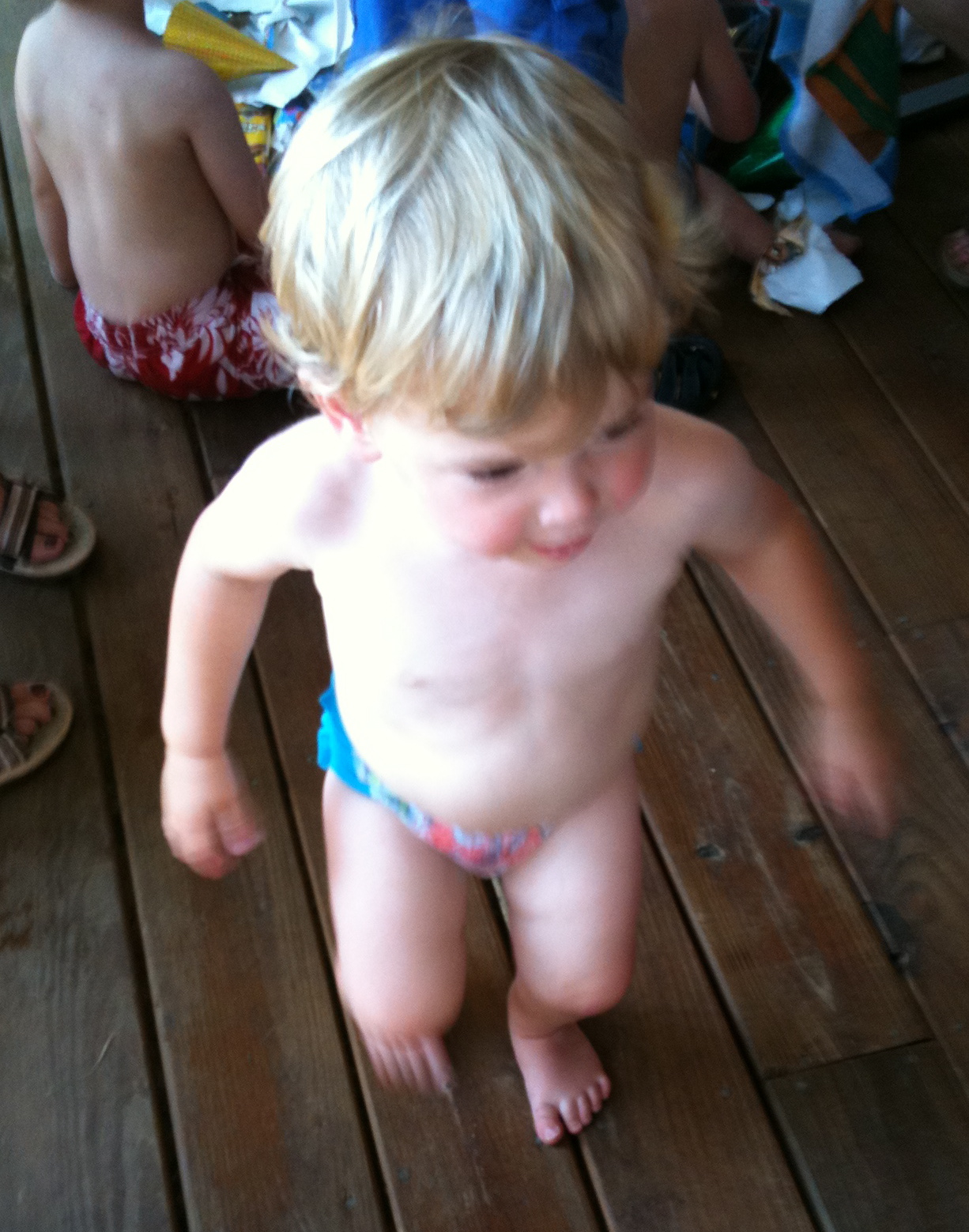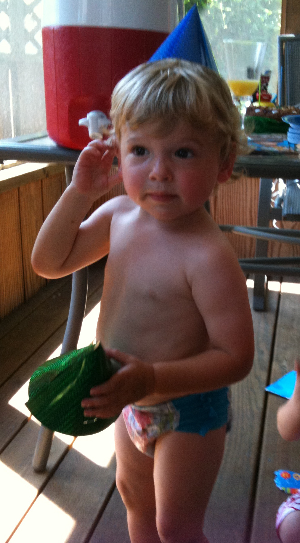 13. An almost two year old who wore nothing but a swim diaper and a party hat during said birthday party.