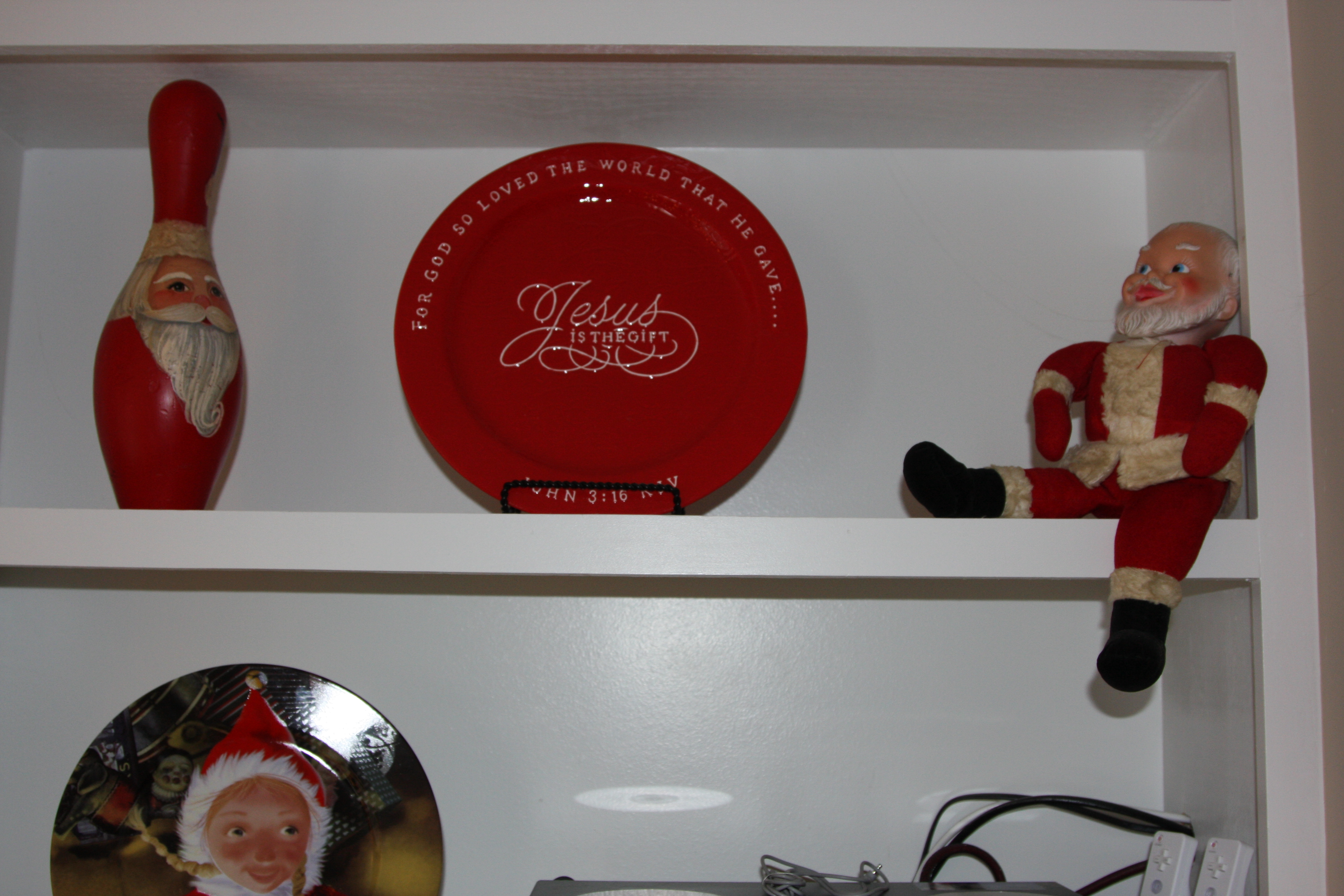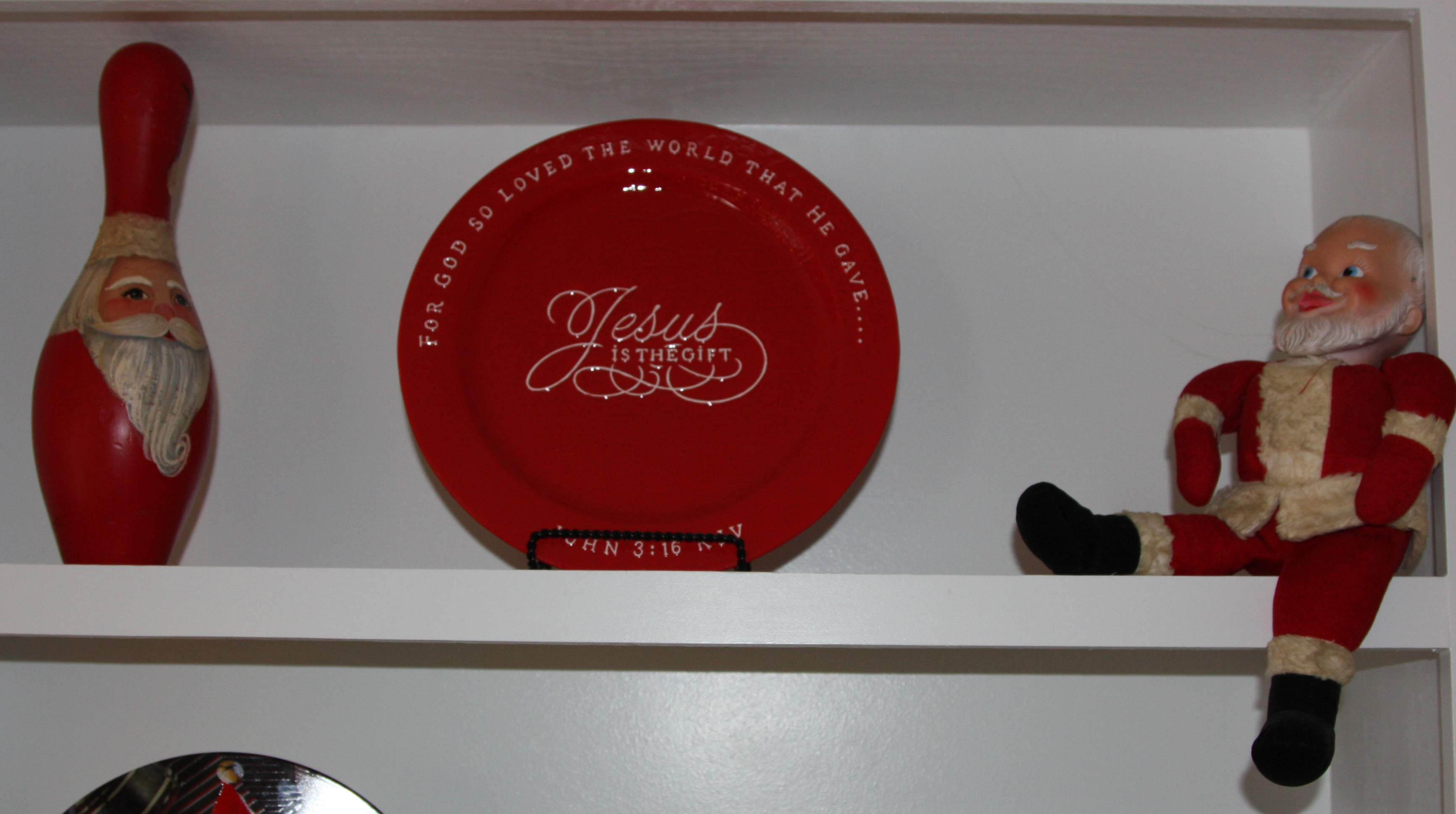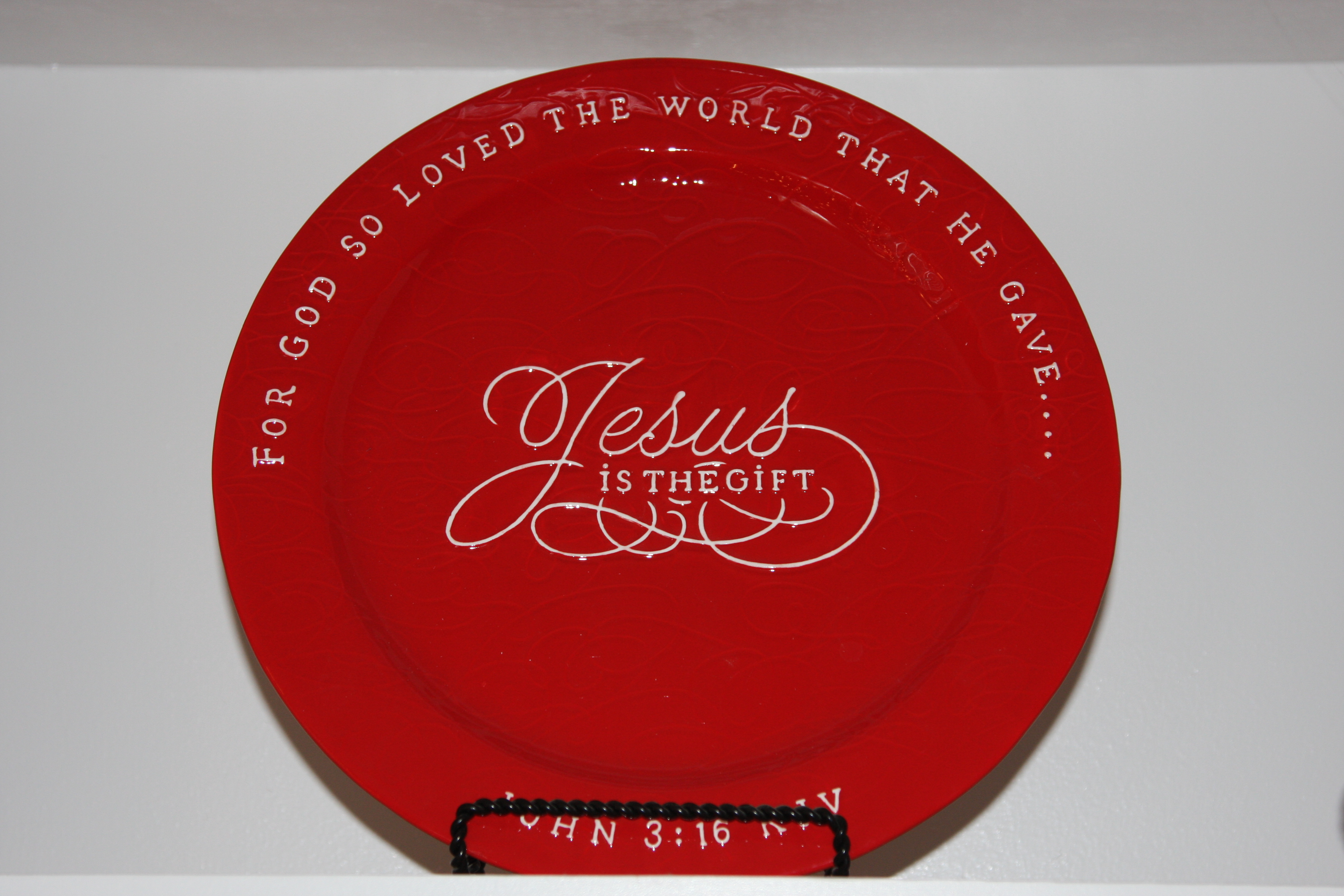 I received the “Jesus is the Gift” platter and I have to say, it’s stunningly beautiful. I decided it was too stunningly beautiful to tuck away and use only for entertaining, so it became a Christmas decoration and it’s now my favorite: