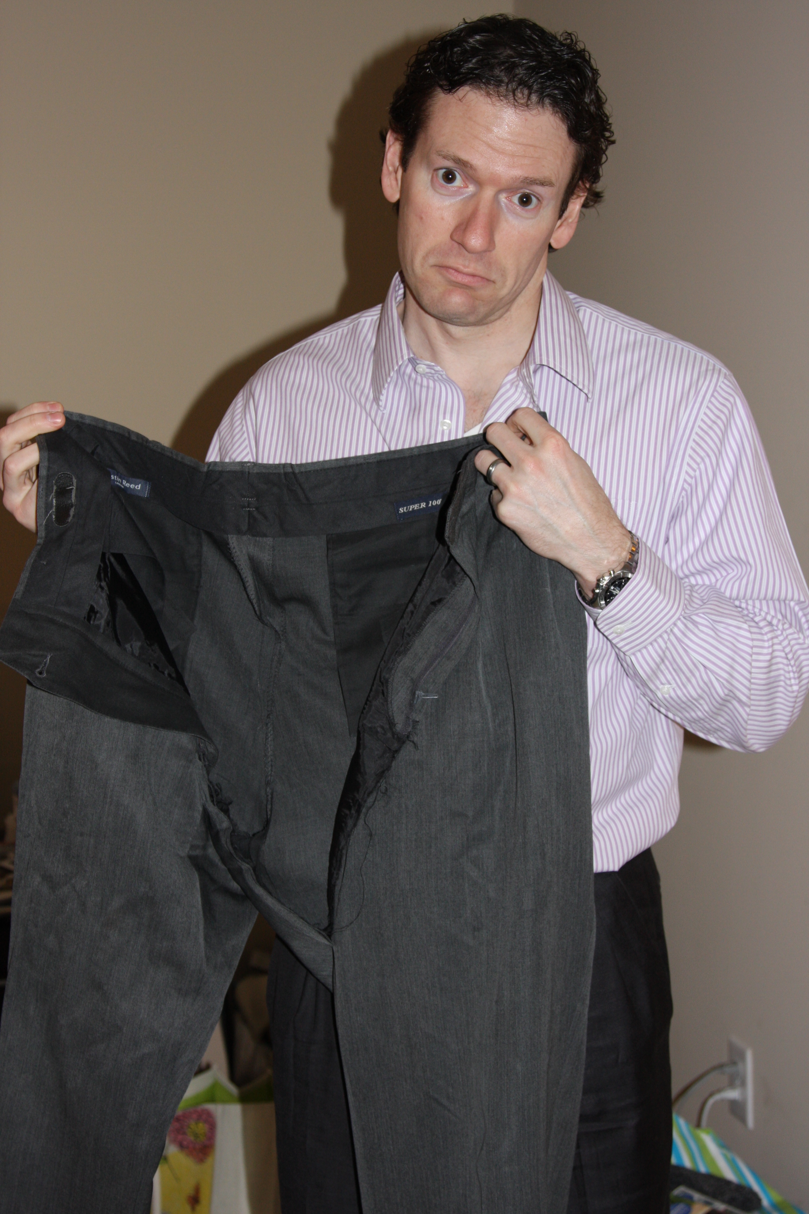 I ripped his pants. Not intentionally – heavens no. But I did rip his best gray pants.