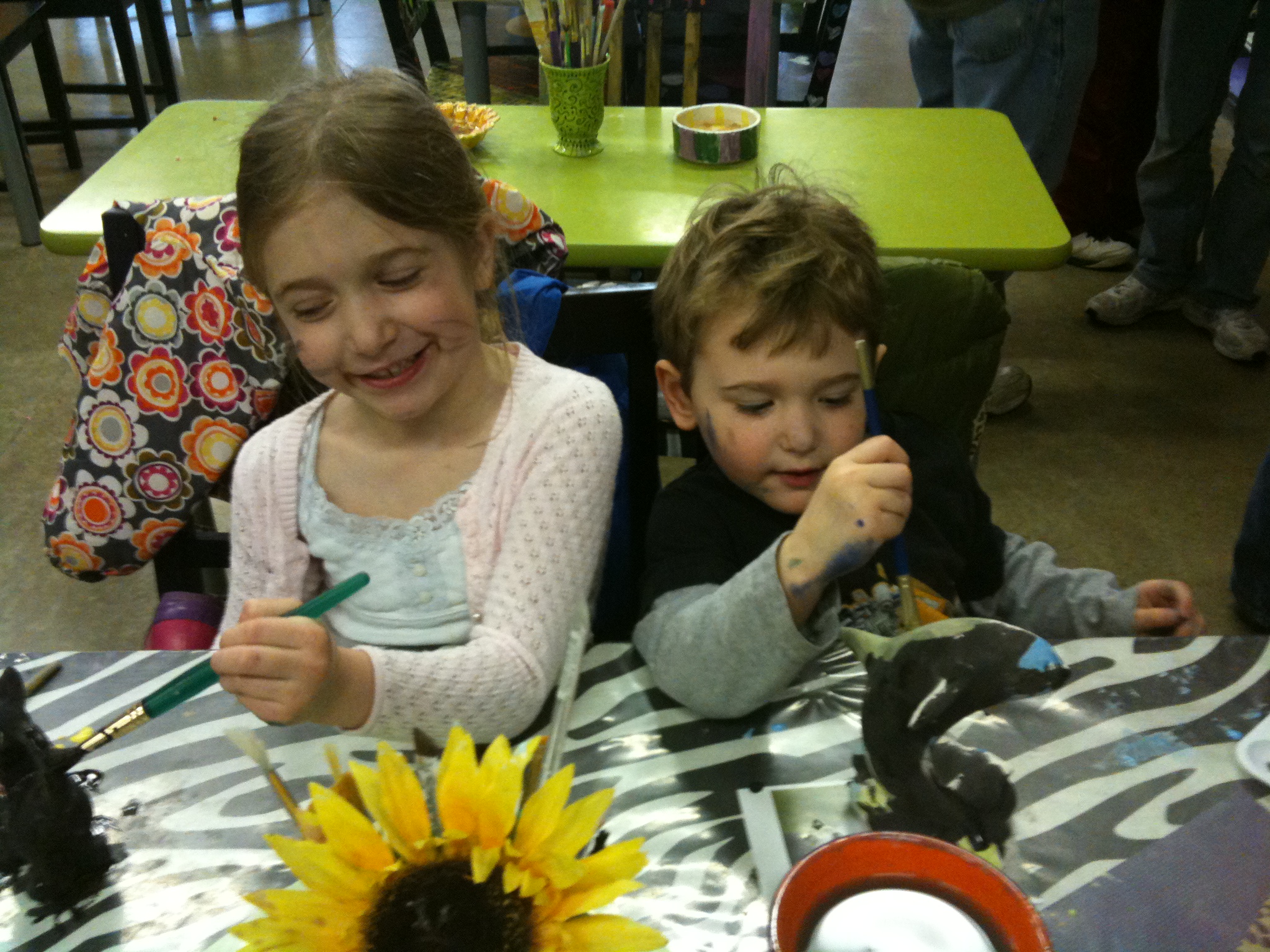 Pottery Painting Party in which my children decided to paint their faces to resemble cats…