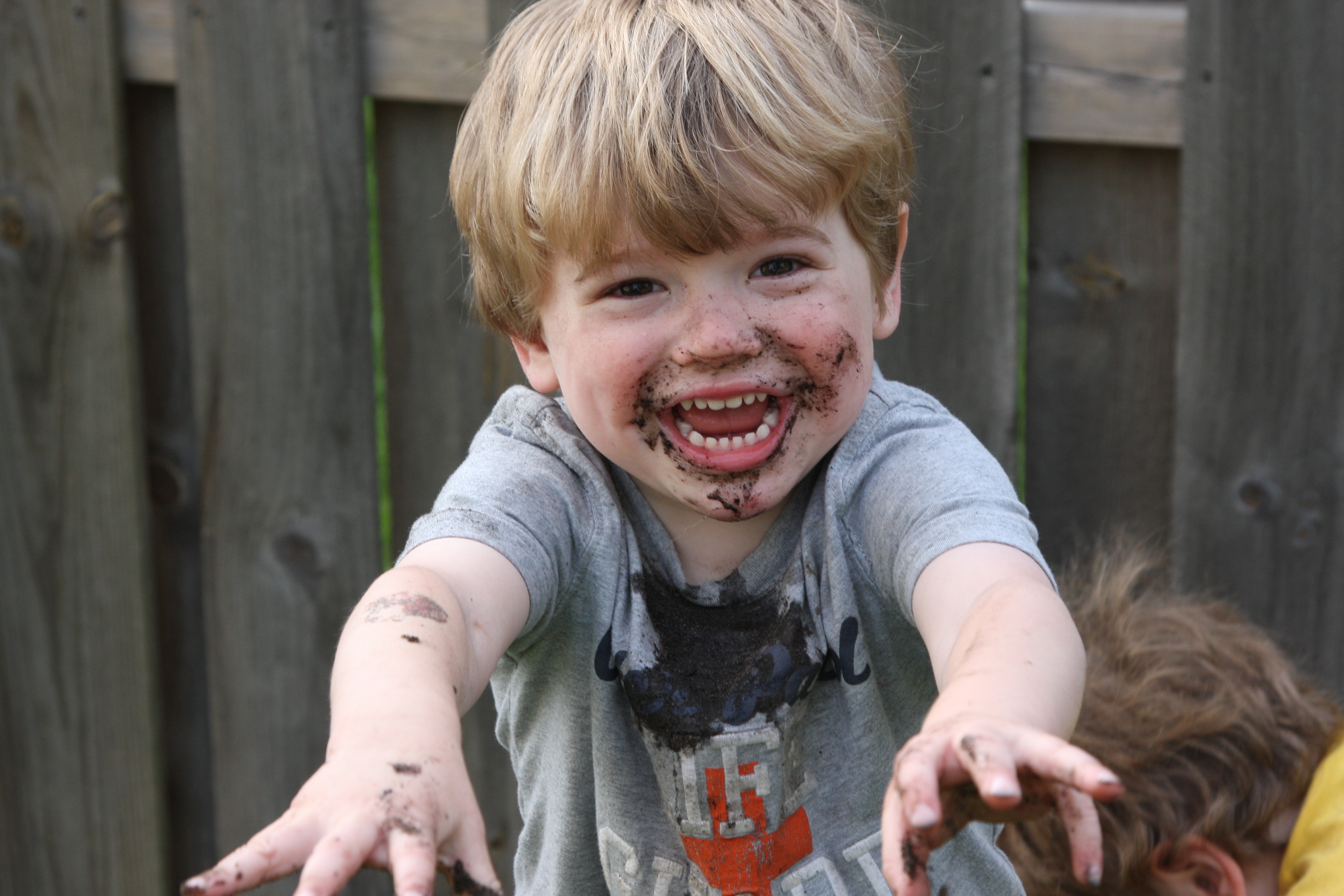 Adorable. I needed the mud face for my blog post today. Gotta love a dirty boy!